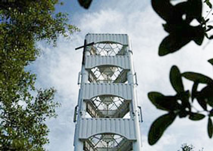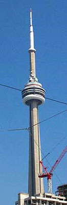 The CN Tower (concrete communications and observation tower) in Toronto, Canada is a good example of a multi-use tower containing broadcast and communications of almost every type. Residents are obviously familiar with the antenna mounted on the top. Somewhat less well known are the microwave transmitters beneath an air inflated redone below the main observation deck as revealed in figures 5a and 5b.