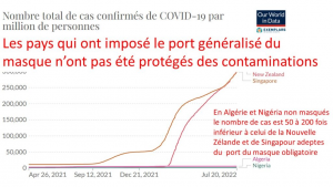 It is indeed within the framework of a “show and tell” that the WHO recommends to wear the mask, while at the same time, it recognizes that this device does not make it possible to stop the virus and to protect the person who wears it. The advantage that the organization sees in this incentive lies in “the modification of the behavior of the populations, who are encouraged to make their own masks and thus take an active part in their destruction.”[1].