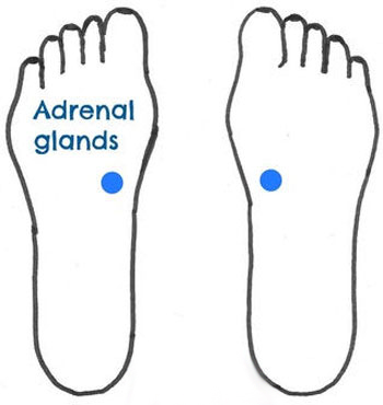I have chosen to share three reflexology points that are easy to locate and work on at home, working on these points has the potential to be deeply relaxing and transformative. The three points are the pituitary gland, the adrenal glands and the solar plexus.