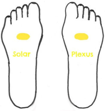 Solar plexus: This is a very nurturing point to work, though it appears quite subtle. It is located at the bottom of the ball of the foot. Very gently holding this point can be extremely relaxing, the pressure can be extremely light and I usually incorporate this towards the end a reflexology session. It helps to relieve nervous tension and encourage deep relaxation.