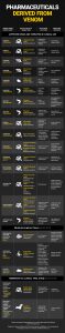 Regardless of what people think about Ardis’ claims, his courage to step forward has set off a wave of journalistic research about reptile venoms used in pharmaceuticals. It was published a full infographic listing all the known pharmaceuticals made from venom (see below).
