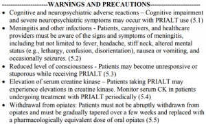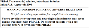 Your doctor may stop your treatment with Prialt, give you other medicines, or require you to be hospitalized if you experience any of these symptoms.”
