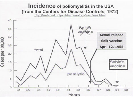 “But, Dr. Kurt, the vaccine saved all those people from getting the paralyzing version”, one might say If you look at the charts below, you will see that Polio was already massively decreasing prior to any vaccine ever introduced. I would also like to add that the highest incidence came at a time USA was in despair (poor sanitation, hygiene, nutrition) during the depression.