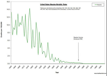 The only statistic I could find for deaths from measles in the US was in 2003 – when America had 2 deaths. 1 death was attributed to post bone marrow transplant surgery and the other was a 75 year old with pneumonia. Media loves to report when there are measles outbreaks but what you’ll never hear in their reports is that anyone died from it.
