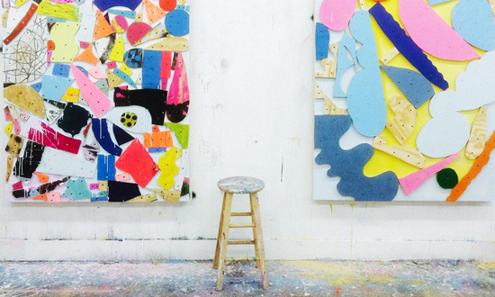Various coloured shapes: a golden triangle, a violet circle, a blue five-pointed star, and so on.”