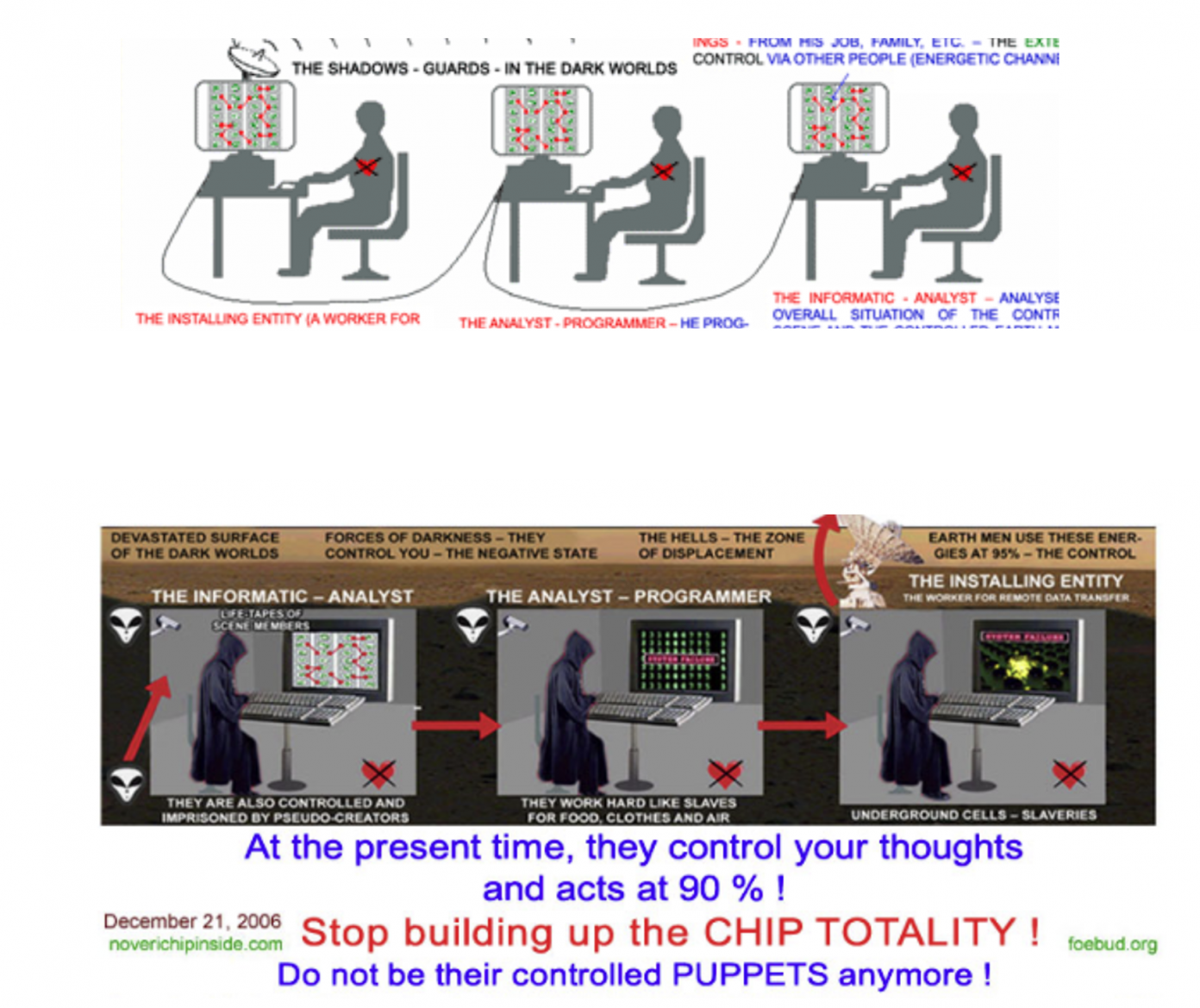 – The Informatic – Analyst: analyses the overall situation of the controlled scene and the controlled Earth man/woman. He/she chooses appropriate practices for creation of needful blocks in human’s bodies and chakras, and makes plans of further control procedures – programs, which he/she then forwards to the Analyst – Programmer.