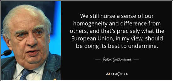 A May 2016 internal report of the International Migration Institute (IMI), an official project of Soros’ Open Society Foundation, boasted of providing the funding for the Sutherland Report, the blueprint for Europe’s migration catastrophe authored by Goldman Sachs billionaire Sir Peter Sutherland, now the UN secretary-general’s special representative on international migration. The same report by top IMI staffers Anna Crowley and Kate Rosin, entitled Migration Governance and Enforcement Portfolio Review calls for “accepting the current crisis as the new normal”. Soros also provides funding for the Columbia Global Policy Initiative (CGPI) at Columbia University, which hosts the secretariat for Peter Sutherland’s UN migration office.