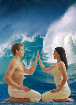 Two drops of dew in the same transparencyThe mystical experience takes place through a spontaneous and total conscious absorption and concentration over every moment of the erotic fusion, eliminating all thoughts about future purposes or goals, including in this ideas regarding to sexual compatibility and even to experiencing states of transcendent consciousness. The conscious abandonment in the amorous experience leads to the stopping of the mind and thus allows the appearance of a beatific state of tuning of the two lovers to the energy of pure love, and implicitly leads us to the plenary experience of states of yoga (the fusion with our own divine essence).