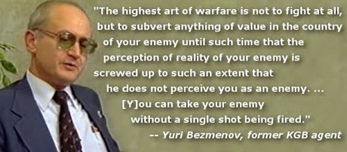 In a 1984 video, ex-KGB agent Yuri Bezmenov describes how the USSR infiltrated nations through four stages of ideological subversion. The same process is occurring right now.