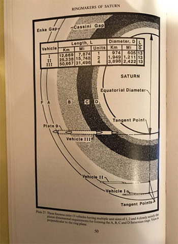 ‟Evidence is 100 percent positive that propulsive vehicles generate the inner and outer Enke A rings of Saturn. Presence of these units is made fortuitously clear in Plates 5 through 8.ˮ