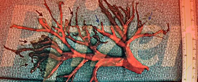 The clots in the image below are from living patients. So, these thick fibrous clots, in the process of forming, are being found in living patients as well as being found by embalmers. The image in the middle is a blood sample taken from a patient in Germany who had been injected with three covid “vaccine” doses. After the sample was taken it began to form fibrils. So, the researchers “spun it down” and the clump in the image on the right came out. The clump is made of the same components as the fibrous clots.
