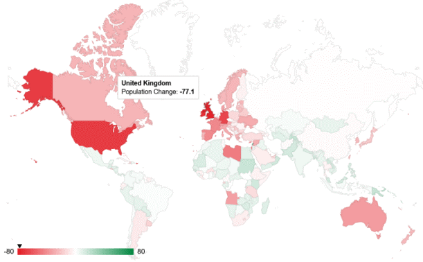 The United States was not far behind with a forecasted decrease of 68.5%. Germany was predicted to witness a reduction of 65.1%, while Australia was expected to see a population dip of 34.6%. These projections also highlighted significant declines in many other Western nations.