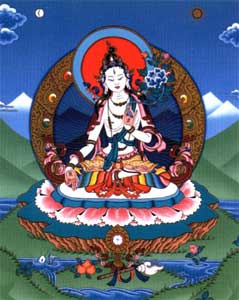 - The White Tara (in Sanskrit: Sitatara, in Tibetan: Sgrol-dkar) incarnated in the Chinese princess. She symbolizes purity and she is often described standing on the right side of her spouse, Avalokiteshvara, or sitting with her legs crossed, holding an open lotus flower. She is generally described as having three eyes. The White Tara, the Mother of all Buddha-s, is the one who gives longevity and energizes those who visualize her, being afterwards able to use that energy for their spiritual practice.