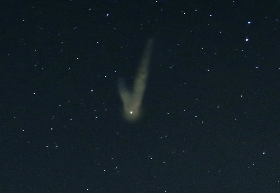 Was it the launch of the Japanese satellite QZS-2 released at 00:17 UTC? Do you really think that a rocket can cover half the planet in 43 minutes? Are there satellites that can accelerate or stop and produce two tails like comets? Some new space experiments?