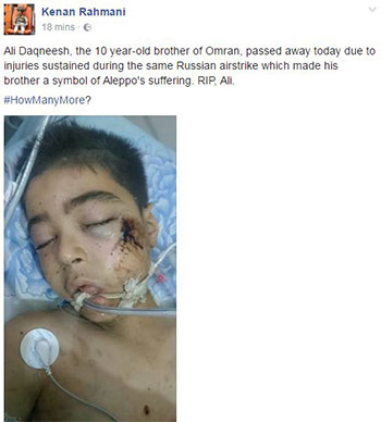 Daqneesh, noting the sound of fighter jets or missiles did not precede the blast which ultimately killed Omran’s 10-year-old brother, explained he had to shave the boy’s head and ferret him away from overwhelming media attention — and from rebel fighters and sympathizers who sought perhaps to wrest the symbolic child from the relative safety of his family.