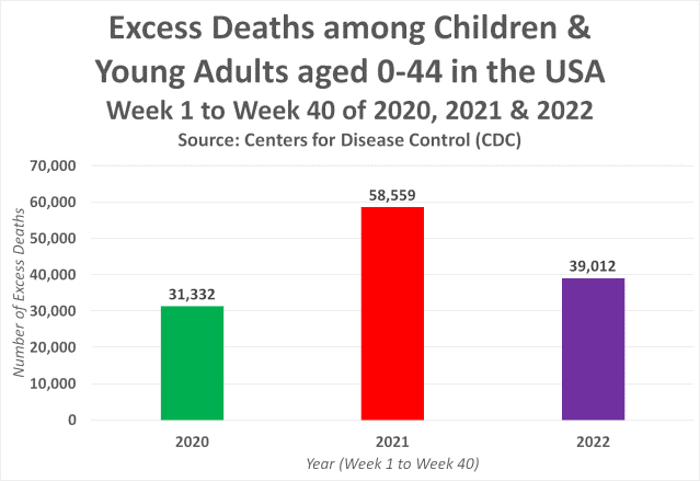 But if we are to believe the official narrative that covid-19 injections are safe and effective, then how can one explain the further increase in death among children and young adults in both 2021 and 2022?