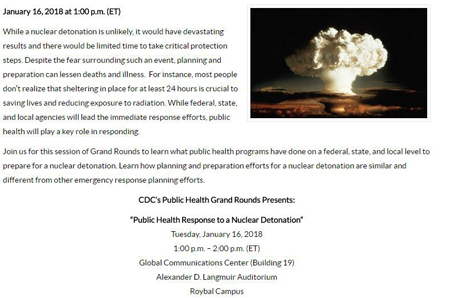 In early January of this year, this report continues, loyal Trump forces preparing a trap for his “Deep State” enemies were blindsided when, without notice, the CDC gravely announced an event that it said would start preparing the American people for nuclear war.