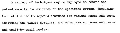 In warrants like this, the government is deliberately not limiting itself to the constitutionally required “particular description” of the messages it’s looking for. To get away with this, it tells judges that incriminating emails can be hard to find – maybe even hidden with misleading names, dates and file attachments – so their computer forensic experts need access to the whole data base to work their magic.
