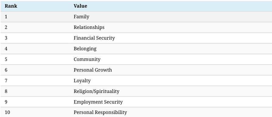 The article lists 56 values that are the most common values shared around the world—sexuality and gender orientation are not even on the list.