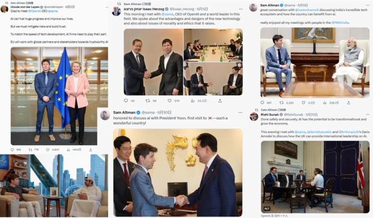 And if you go to Sam Altman’s Twitter account, you find a multitude of seemingly cheerful photos showing various world leaders of the New World Disorder engaging in friendly conversations with him. For a moment, one might think that the G20 summit has started early and that OpenAI is the host.