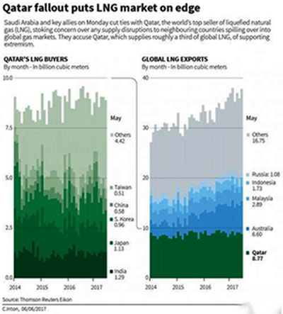 Whether nat gas is the source of the Qatari isolation always depends on the steps taken by both Saudi Arabia and Iran. Saudi Arabia, along with the United Arab Emirates and Egypt – are all highly reliant on Qatari gas via pipeline and LNG.