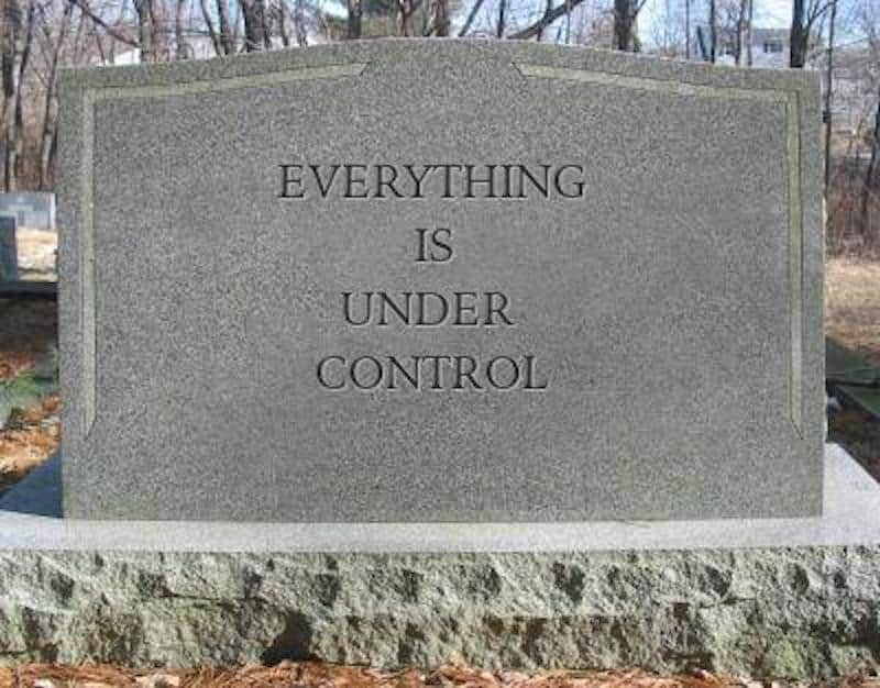 Post-Christian Western culture is built on the illusion of control. In the past, it was widely assumed that we are in God’s hands and could easily enjoy or suffer gratuitous reversals of fortune at any moment. But over the past 500 years or so, runaway technology gradually built up an illusion of human control. That historical quest to be in control, and its accompanying ideology, has, paradoxically, spun completely out of control. Symptoms of out-of-control Control Freakism include “you-control-which-gender-you-are-by-saying-so,” transhumanism, the unleashing of artificial intelligence, the approaching Singularity, and the German vaccination requirement for assisted suicide.