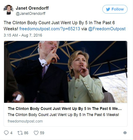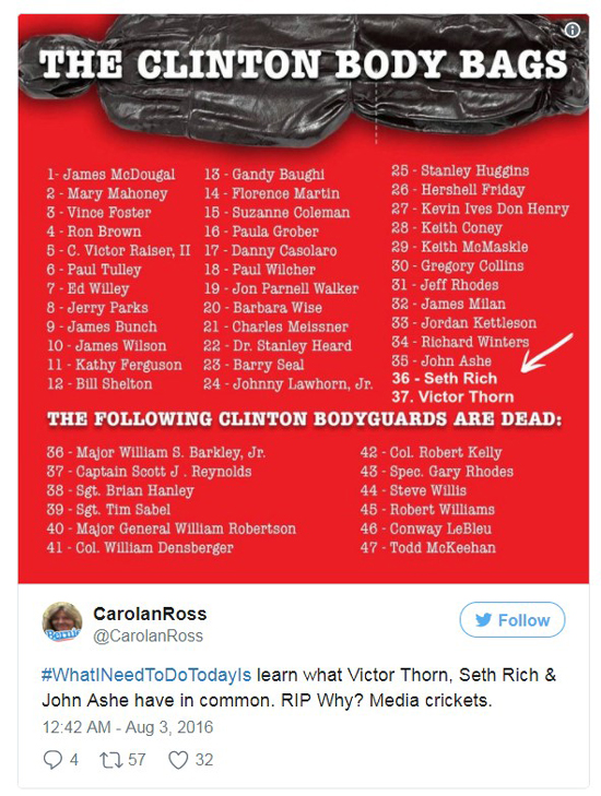 Here’s an example of those who are convinced that the Clinton body count and kill list is real.