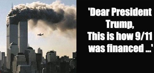 I believe that your leadership in placing the truth about 9/11 before the public will finish the job of taking down the Deep State and the Shadow Government – it will help you shut down the pernicious Zionist/Saudi penetration and subversion of the US economy, government, and society and it will help you demonstrate to the larger public, most of whom did not vote for you, that under your leadership, the US Government can be trusted to clean house and tell the truth.