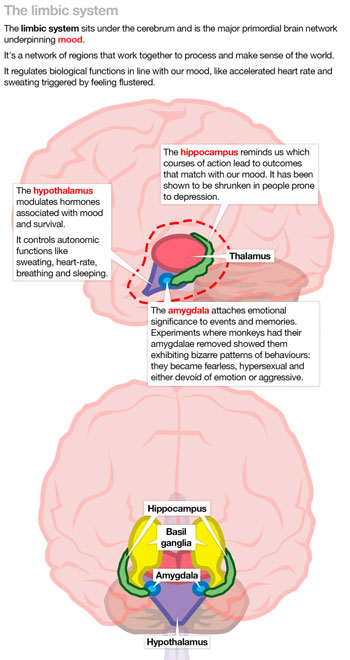 The limbic system is the major primordial brain network underpinning mood. It’s a network of regions that work together to process and make sense of the world.