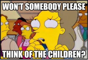 Or, if the Russki/Chicom/North Korean disinfo bogeyman isn’t alarming enough, we can always pull out the time-tested emotional blackmail tactic of mothers everywhere: “Won’t somebody think of the children!”