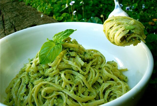 4. Combine the basil, lemon juice and mashed avocado in a food processor.