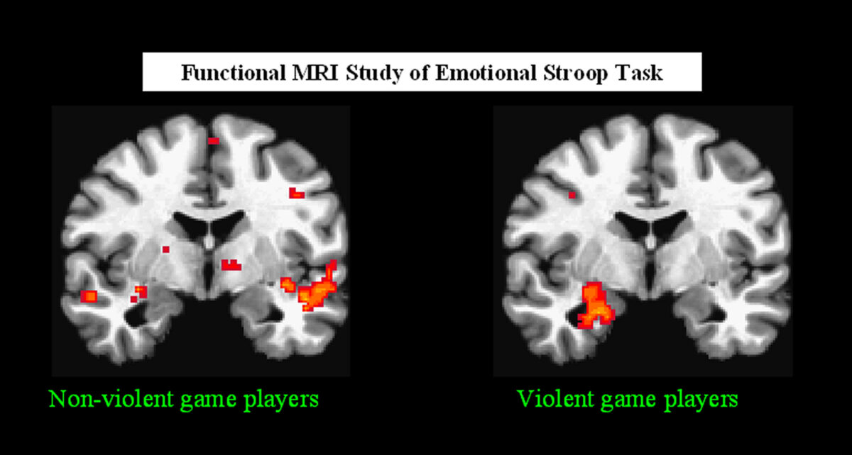 However, in the group playing a violent game this processing was reduced and the regions responsible for empathy, impulse control, and some control of fear processing was deactivated.