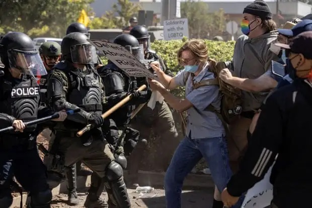 A recent video portrays real-life clashes between demonstrators and counter-demonstrators at events in California. As demonstrators yelled, damaged and stole signs and banners, and chased one another, it all seemed somewhat absurd.