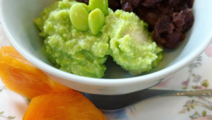 The dried fruit aids digestion and overall gut health, and the cinnamon can help boost metabolic and immune function. When it comes to beans as surprising desserts, I’m also a big fan of edamame paste, called “zunda.” It pairs perfectly with tofu mochi, which is made with tofu and rice flour.