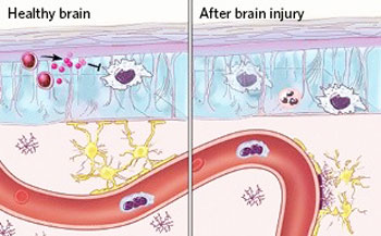 They also experimented by preventing macrophages from entering the CNS by obstructing the receptors that respond to nearby cell damage which showed that the mice were in worse condition within the first 24 hours after injury. “In every case, we have created more injury and more [neural] cell death.” They also discovered that microglia strengthen the BBB, which is composed of endothelial cells, pericytes, and astrocytes. Microglia fill in spaces left by astrocytes killed or damaged during injury. “Without a robust barrier unwanted immune cells may flood the parenchyma and do more harm than good” McGavern says.