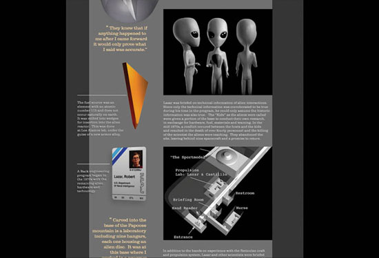Lazar claimed to have being recruited by the Office of Naval Intelligence (ONI), through defence contractor EG&G, to work as part of a team on a highly classified project which involved examining and reverse engineering a 52 feet wide saucer-shaped craft that he quickly realised was not built by humans.