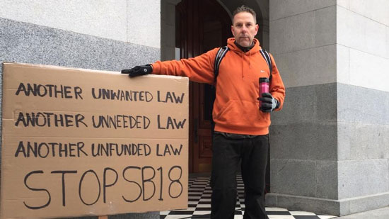 A citizen protests against state Sen. Richard Pan’s proposed Children’s Bill of Rights.