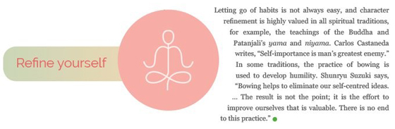 As we grow up, we learn values from our society and family. We learn what is right and wrong. As childhood turns into adulthood, we become more and more set in our ways, creatures of habit. When we are confronted with new situations we resist transformation. When we meet someone who is different from us, we react with prejudice. We think that we are right and they are wrong, or we are better than they are. We are not flexible and open, unless we do something to reverse the accumulation of habits.