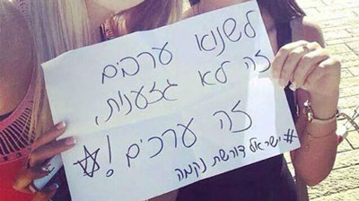 A picture posted to Facebook depicts two girls holding a sign that reads: “Hating Arabs is not racism; it’s morality!”