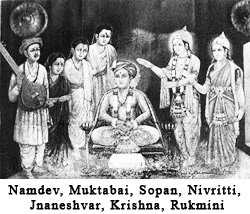 Jnaneshvar and his two brothers, Nivrittinath (his spiritual Guide) and Spoan, with his sister, Muktabai, were the children of a sannyasin who, forced by circumstances, had to adopt a family life. This was the first event in the history of the Maharashtra state in which a man returns to family life after making the religious covenant and wearing the orange robe. And this unfortunate event caused suffering not only to the parents but also to their children. In those days the Orthodox influence and power were so great that the family was ostracized by the entire population of Alandi, being forced to live in a hut outside the city. The mere sight of a family member was considered an ominous sign!