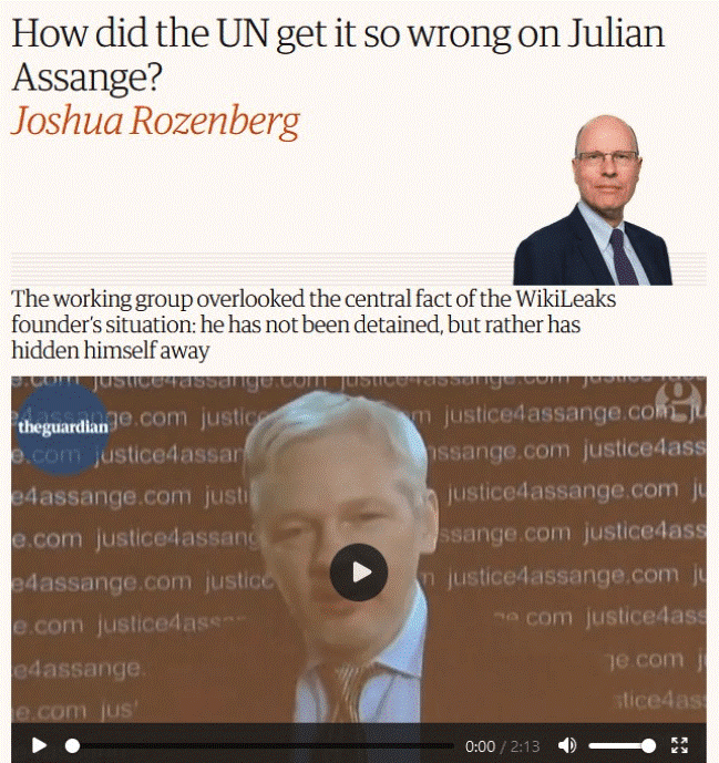 Long-time BBC legal affairs correspondent Joshua Rozenberg was given space in The Guardian on the same day to get it so wrong in claiming Assange was simply “hiding away” in the embassy, under no threat of extradition (Note: Though his analytic grasp of the case has proven feeble, the BBC allowed him to opine further on the Assange case).