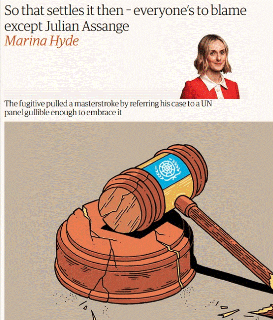 Marina Hyde in The Guardian in February 2016 – four years into his captivity in the embassy – casually dismissed as “gullible” the concerns of a United Nations panel of world-renowned legal experts that Assange was being “arbitrarily detained” because Washington had refused to issue guarantees that it would not seek his extradition for political crimes.