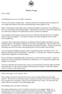 The special message comes as the former First Lady released a message in the wake of the assassination attempt calling on Americans to reject division and hate, and embrace love and unity.
