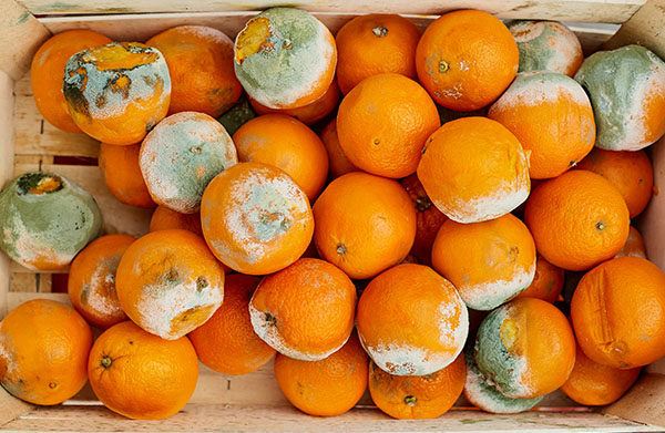 - Fruit, like raspberries, oranges and blueberries, can hide mold on the bottom side or even on the inside where you don’t notice at first glance. Check them all before you simply gobble down a whole bunch.
