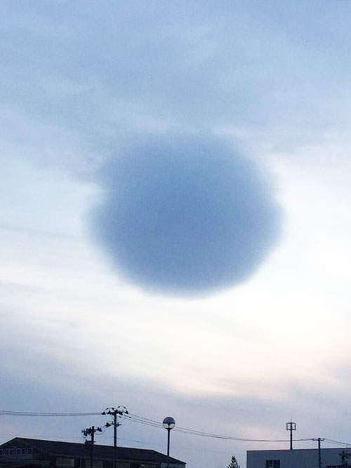 This perfectly round cloud was seen in the city of Koriyama, in the prefecture of Fukushima, in November 2015.