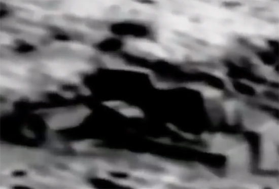 In one of the photographs, we see an enormous cylinder standing inside a crater-like formation. It’s smooth perfect shape is nothing that could have been created by nature. In another shot, we see an enormous satellite dish, strange vehicle tracks, and objects that glaringly stand out. They are clearly artificial, unnatural in the lunar landscape.