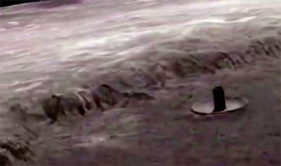 As strange as all of these photographs are, one of the strangest is of the Mare Crisium region of the Moon. Mare Crisium is also known as the “Sea of Crises,” a lunar mare, or dark flat plain 345 miles in diameter. The Apollo Astronauts photographed a bizarre cylinder standing in a dish-shaped bowl, with another protruding tube-like object with a ball on the end jutting out of the landscape nearby.