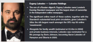 In March 2022 Newsquest bought out local publishing rivals Archant, taking control of its 7% market share and cementing Newsquest’s place at the top of a heavily concentrated pack. The forthcoming auction of the Telegraph titles and Spectator magazine risks further reducing the already pitiful diversity of voices in the UK’s national press. With potential bidders including the Daily Mail General Trust and a co-owner of GB News, the sale could merely transfer ownership of these titles from one set of offshore right-wing oligarchs to another.