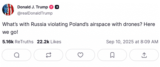 Following the drone incident in Poland, President Trump posted a very ominous message on his Truth Social account: