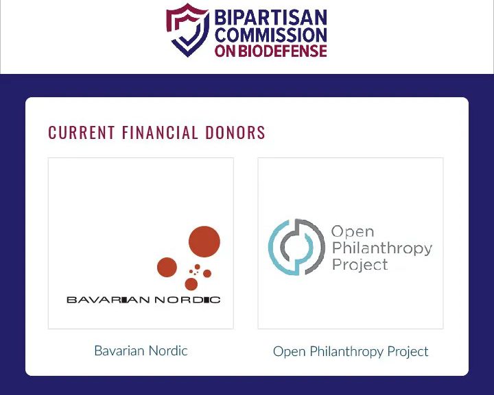 The Commission’s current financial donors are Bavarian Nordic, which states: “a firm focus on vaccines stands at the core of everything we do”, and Open Philanthropy Project, with grants related to Global Catastrophic Risks, Biosecurity and Pandemic Preparedness.